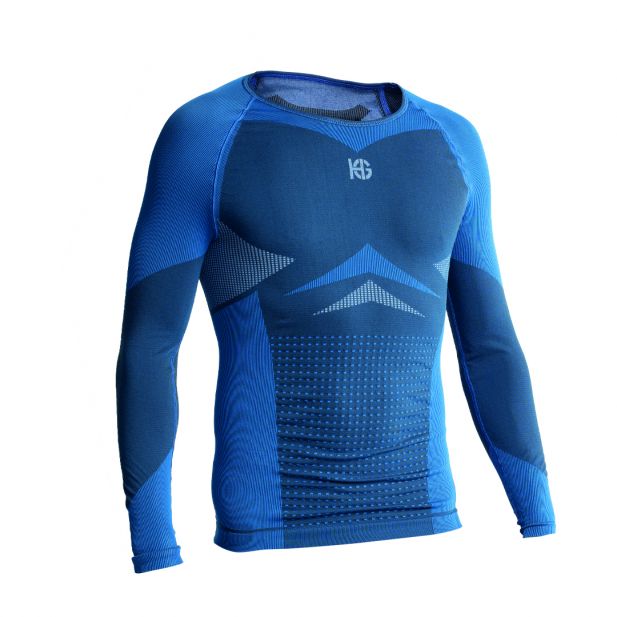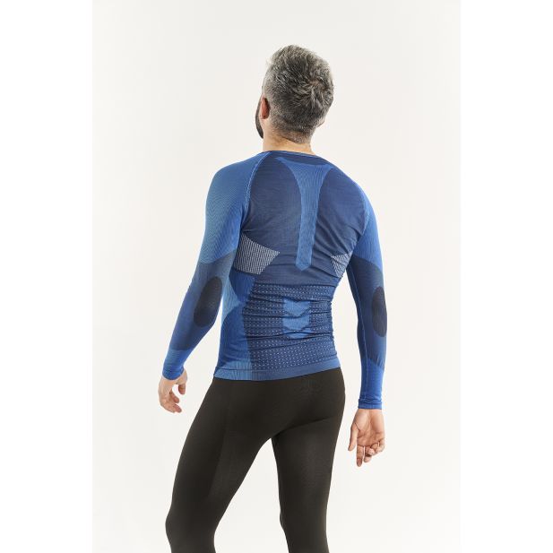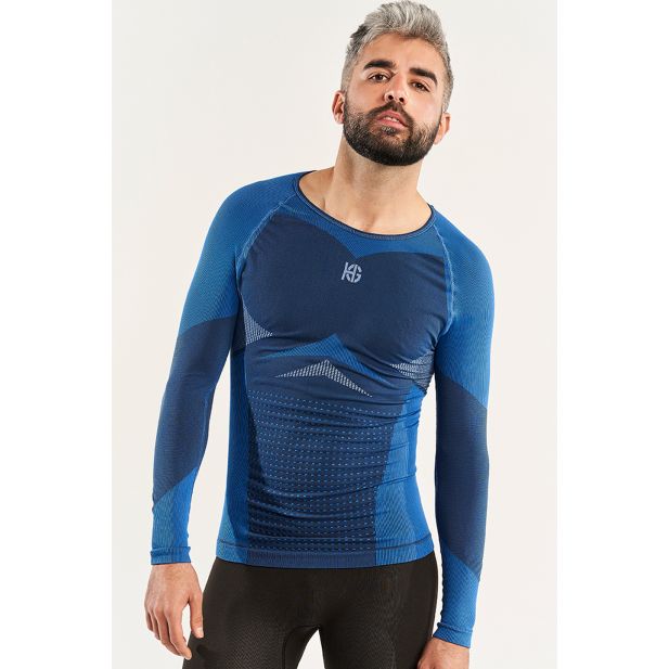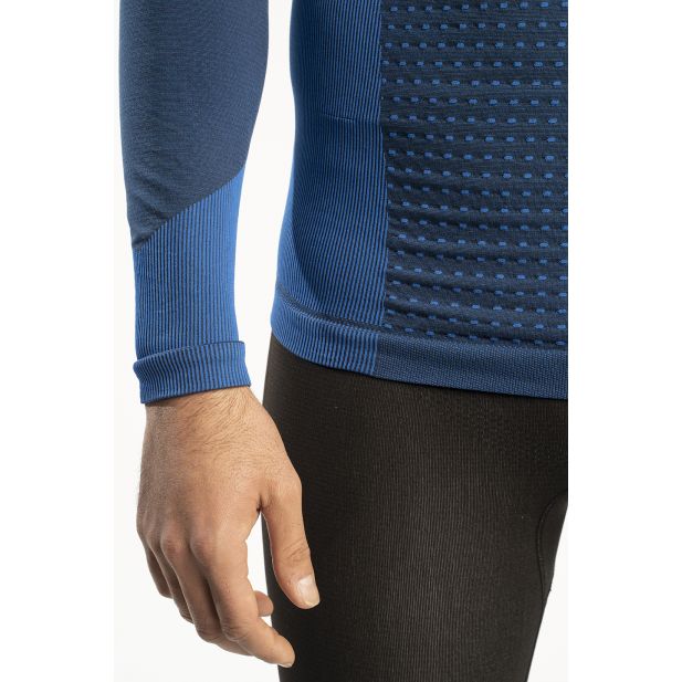 Men's long-sleeved technical shirt for skiing. Lumbar protection with carbon fiber and areas of maximum breathability in the back and armpits. Smart thermoregulation, superabsorbent fabric, antibacterial, anti-odor layer and UPF + 40 protection.