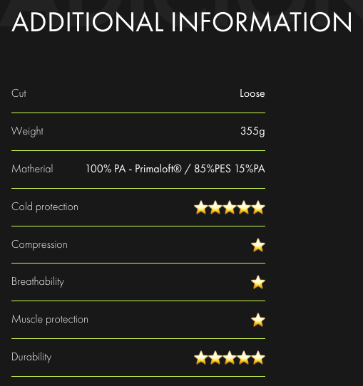 Three layers of thermoregulating material offer the user special protection