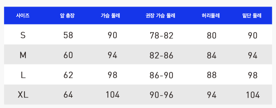여성용 사이즈 가이드